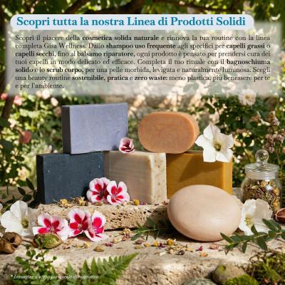 Questo Shampoo in formato solido concentrato è arricchito con saponine naturali quali: Shikakai dall’India, Dattero del Deserto dall’Africa e Gypsophila dal Mediterraneo. La presenza del Burro di Karitè biologico e gli Oli di Cocco e Jojoba aiutano a nutrire e proteggere capelli e cute, nutrendo in profondità i capelli secchi o sfibrati.