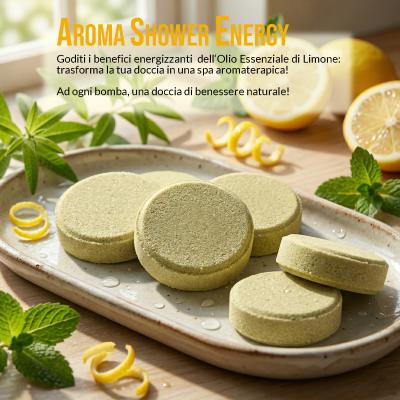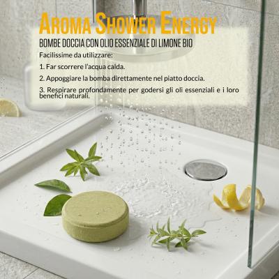 Aroma Shower Energy sono le innovative bombe da doccia con Olio Essenziale di Limone Bio, 100% puro e Naturale. L’olio Essenziale di Limone è perfetto per donare energia, favorisce la concentrazione e la memoria. Usa Aroma Shower Energy sotto la doccia per iniziare la giornata con la carica giusta!