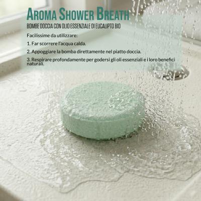 Aroma Shower Breath sono le innovative bombe da doccia con Olio Essenziale di Eucalipto Bio, 100% puro e Naturale. L’olio Essenziale di Eucalipto è perfetto per liberare il naso, grazie alle sue proprietà balsamiche e decongestionanti.  Usa Aroma Shower Breath sotto la doccia, sarà un toccasana nelle fredde giornate d’inverno!
