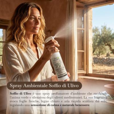 Soffio di Ulivo è uno spray profumatore d’ambiente che racchiude l’anima verde e silenziosa degli uliveti mediterranei. La sua fragranza evoca foglie fresche, legno chiaro e aria tiepida scaldata dal sole, regalando una sensazione di calma e naturale benessere.